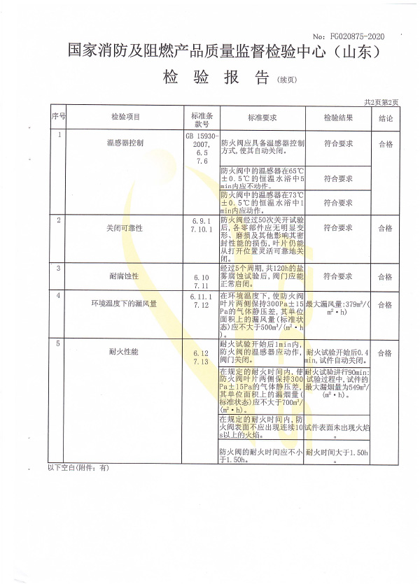 防火閥認證證書1250X1000